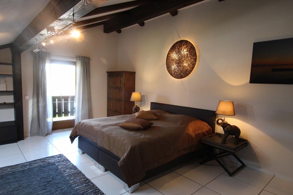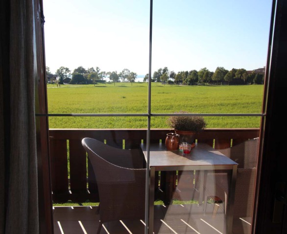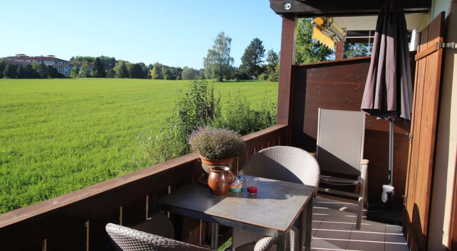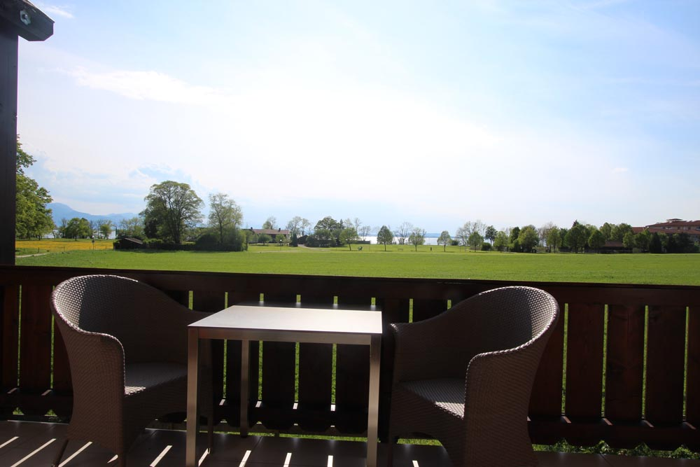 Von Wohnung und Balkon aus haben Sie einen wunderschönen Blick über den nur 250m entfernten See in die Berge.