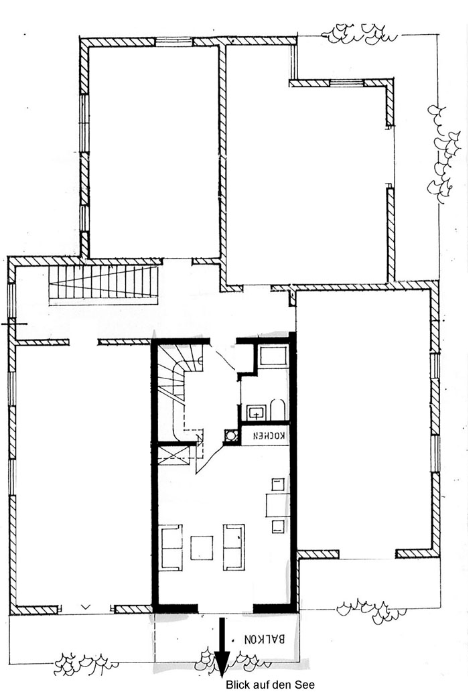 Die Wohnung ist in ruhiger, sonniger Lage in unmittelbarer Seenähe gelegen.