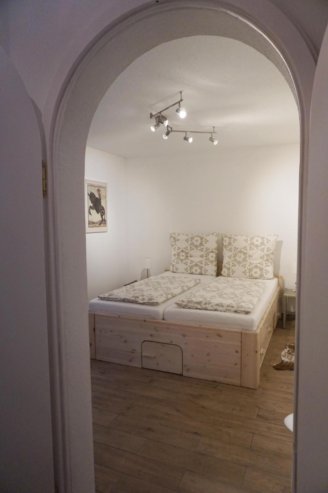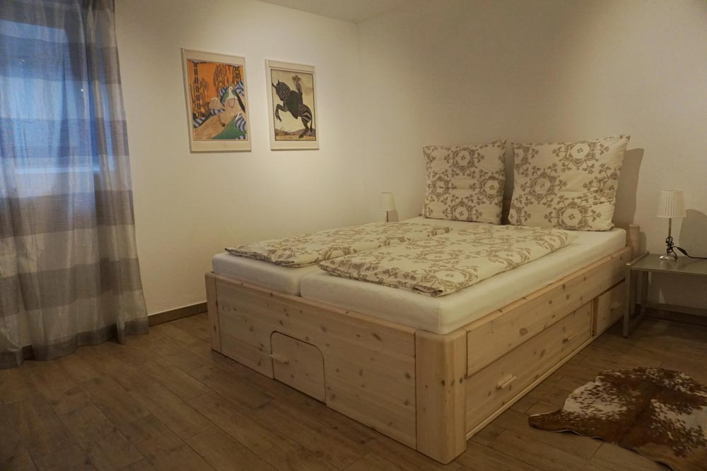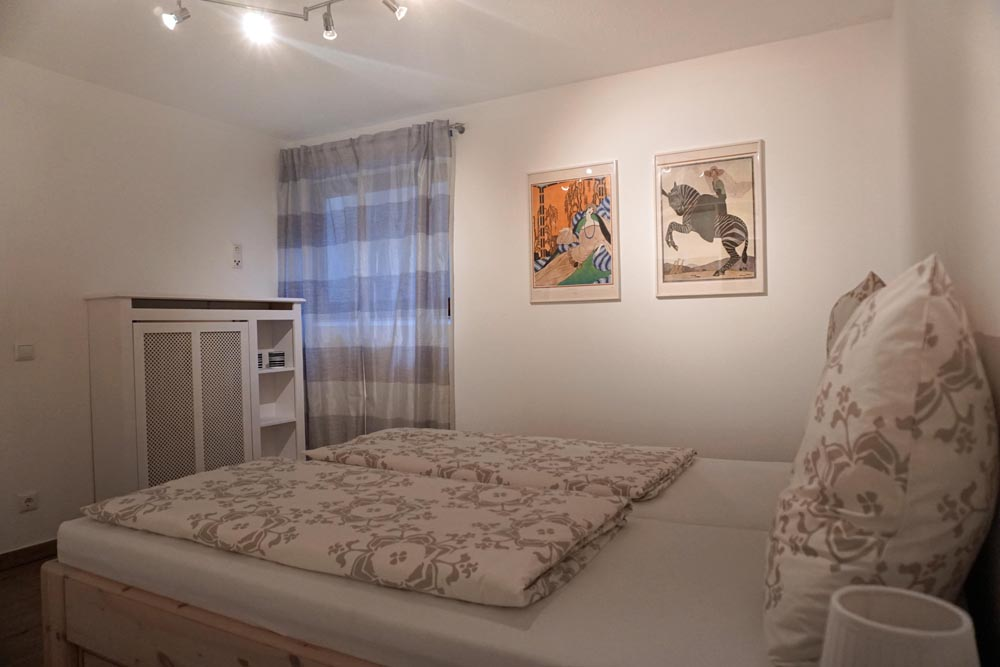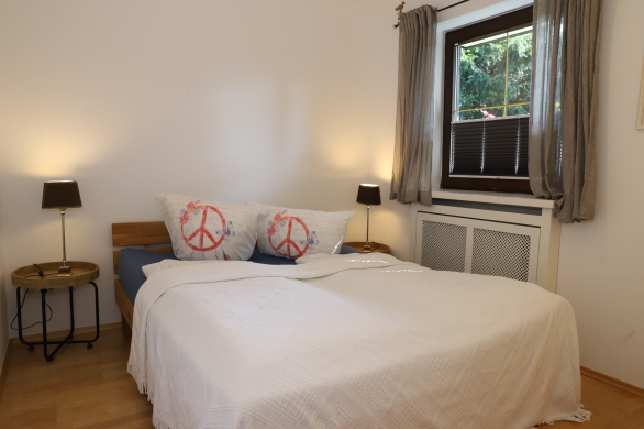 - Schlafzimmer mit Doppelbett im UG mit Bettwäsche